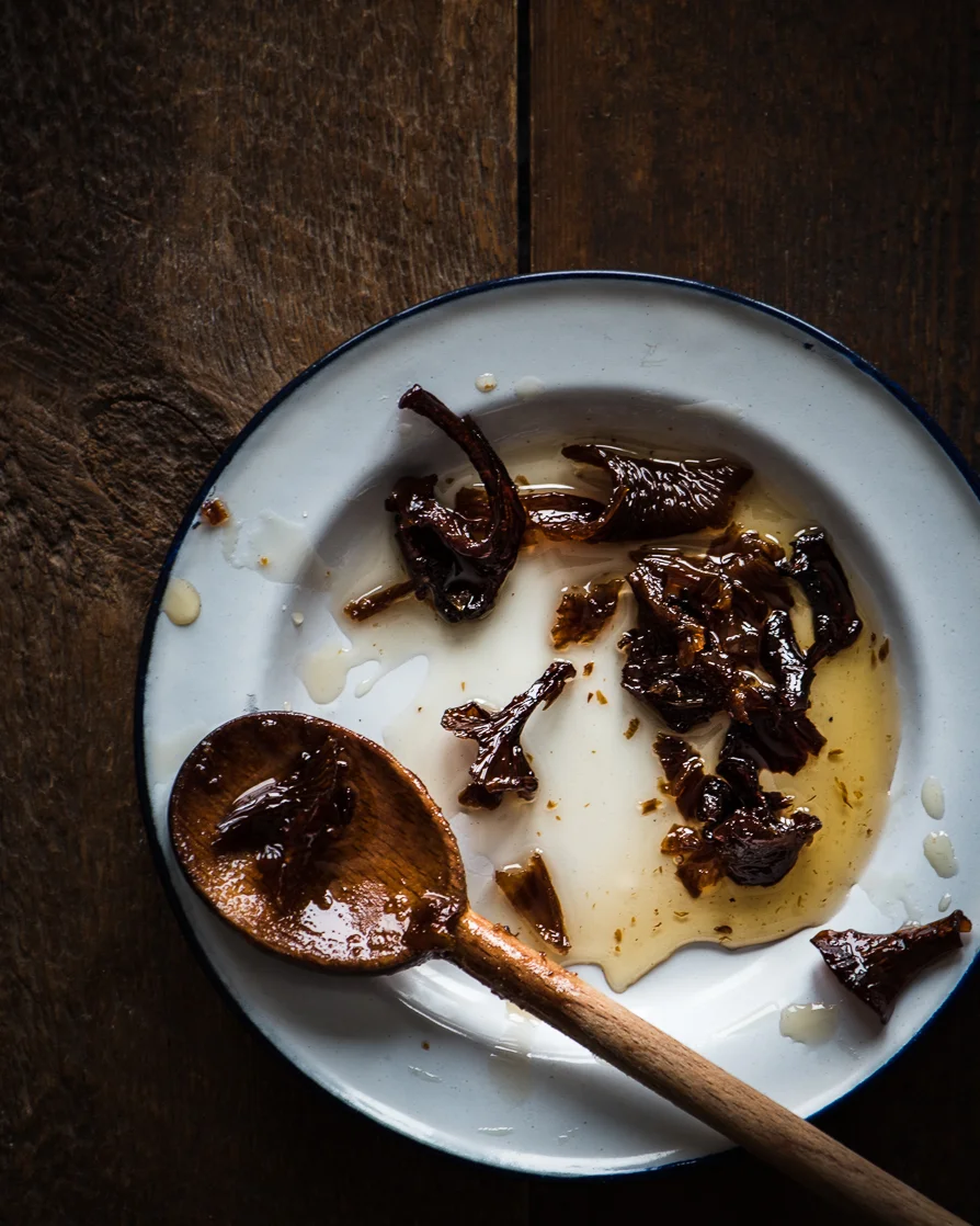20 g dried chanterelle mushrooms (Break larger mushrooms into smaller pieces. I find the smaller ones taste better as they get more ‘candied’.)