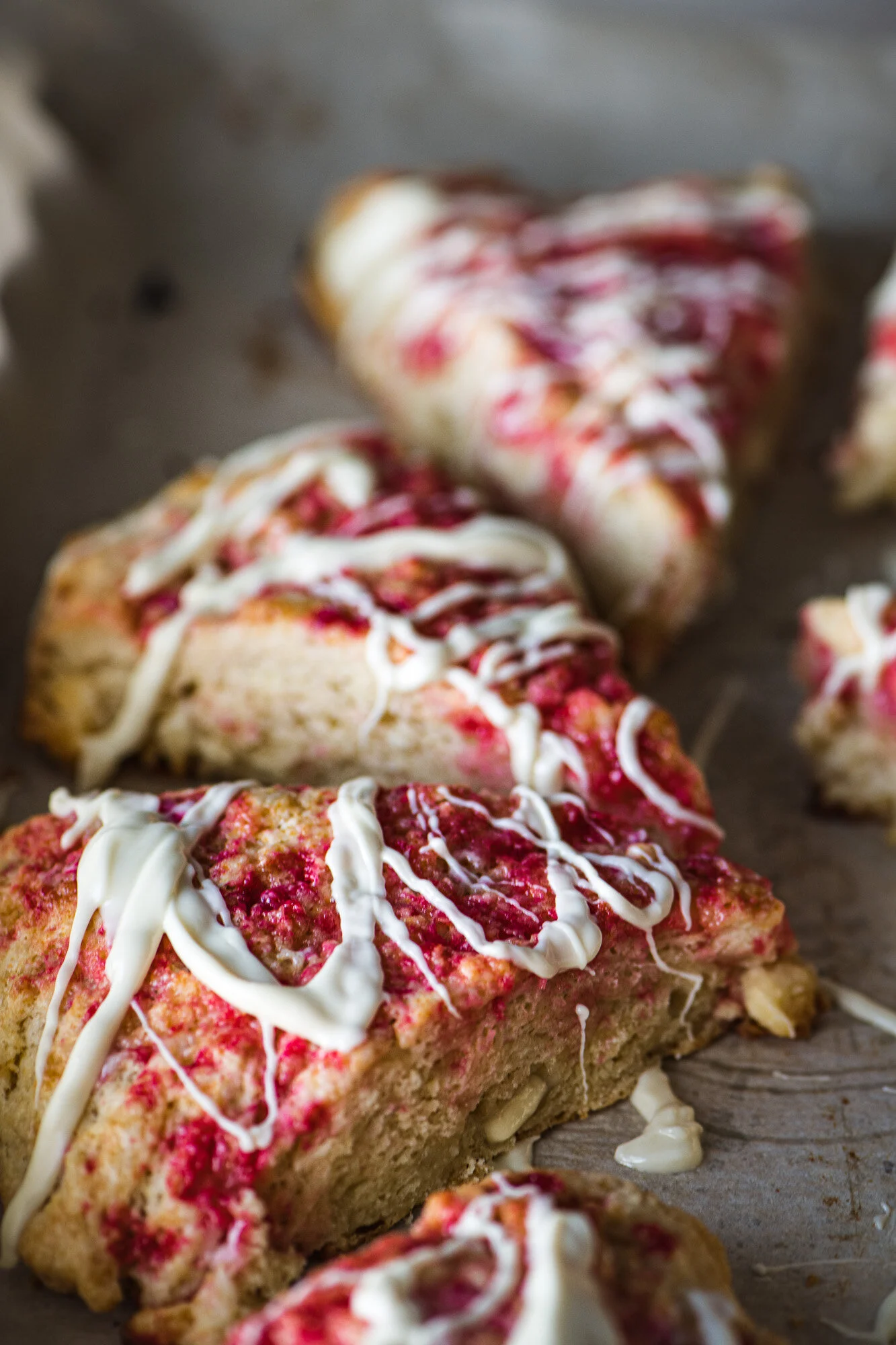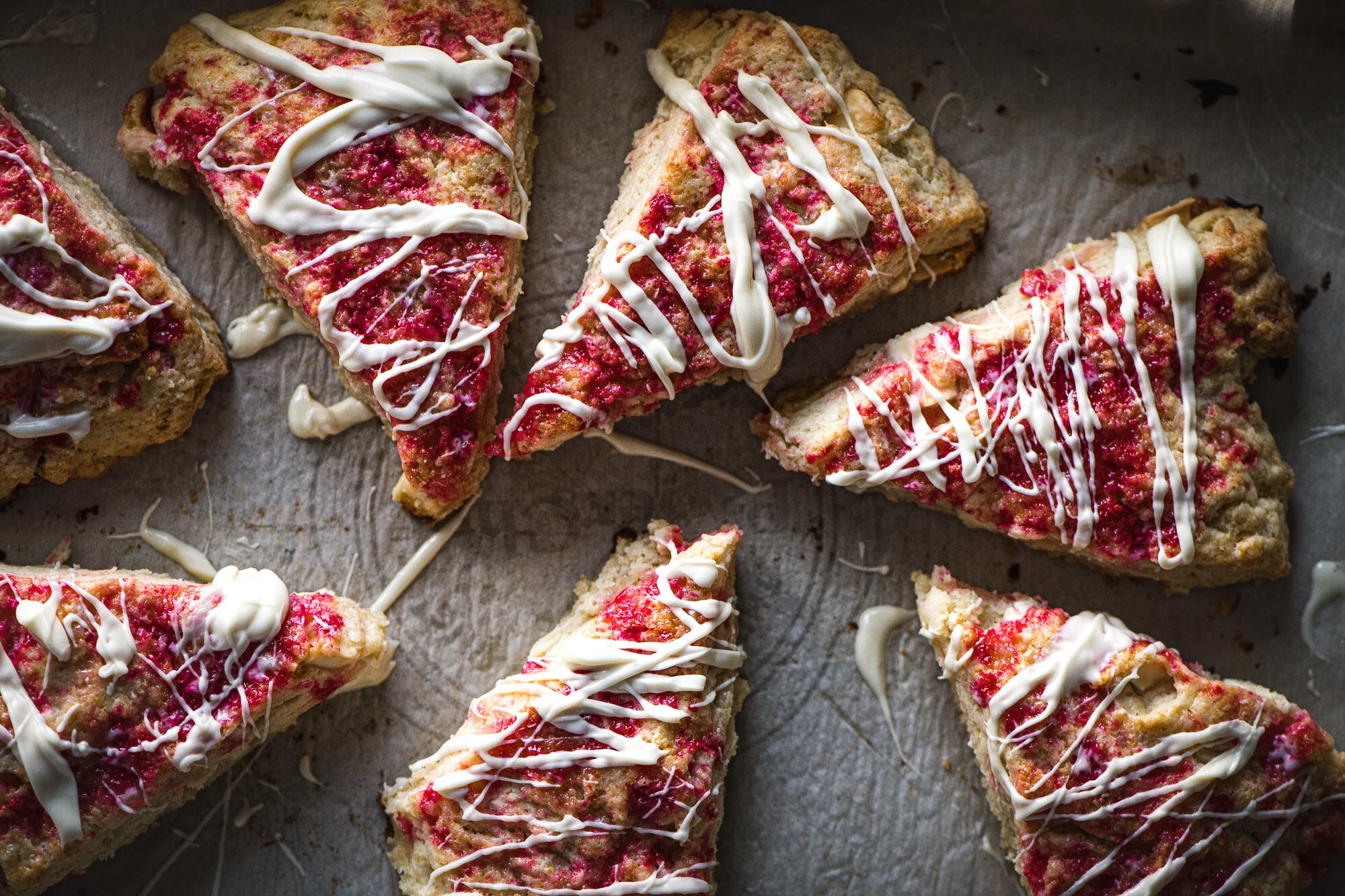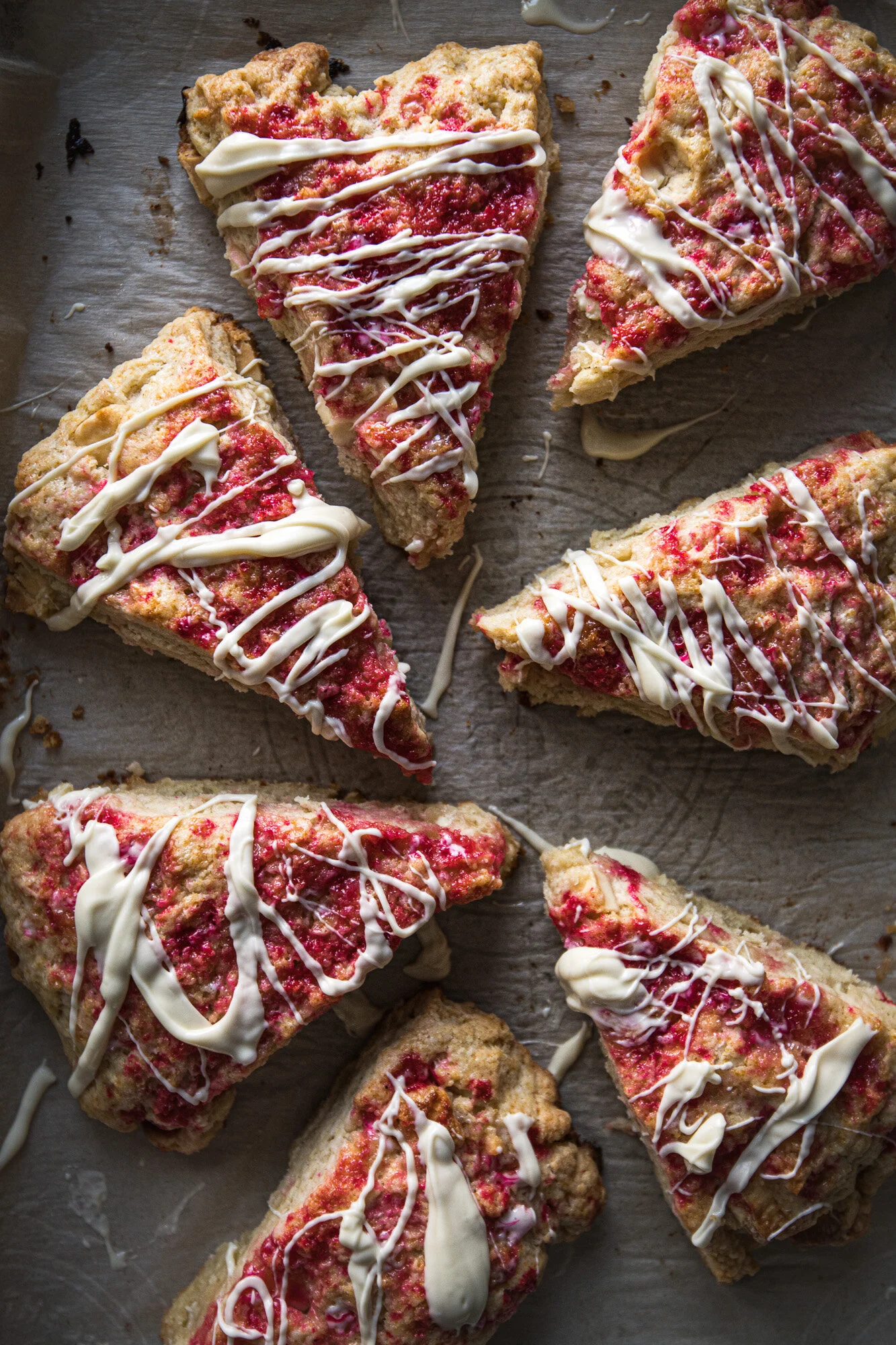 They bake a little flakey, but still moist from the pockets of sweet white chocolate. Perfect pairing with a warm cup of tea and some company.