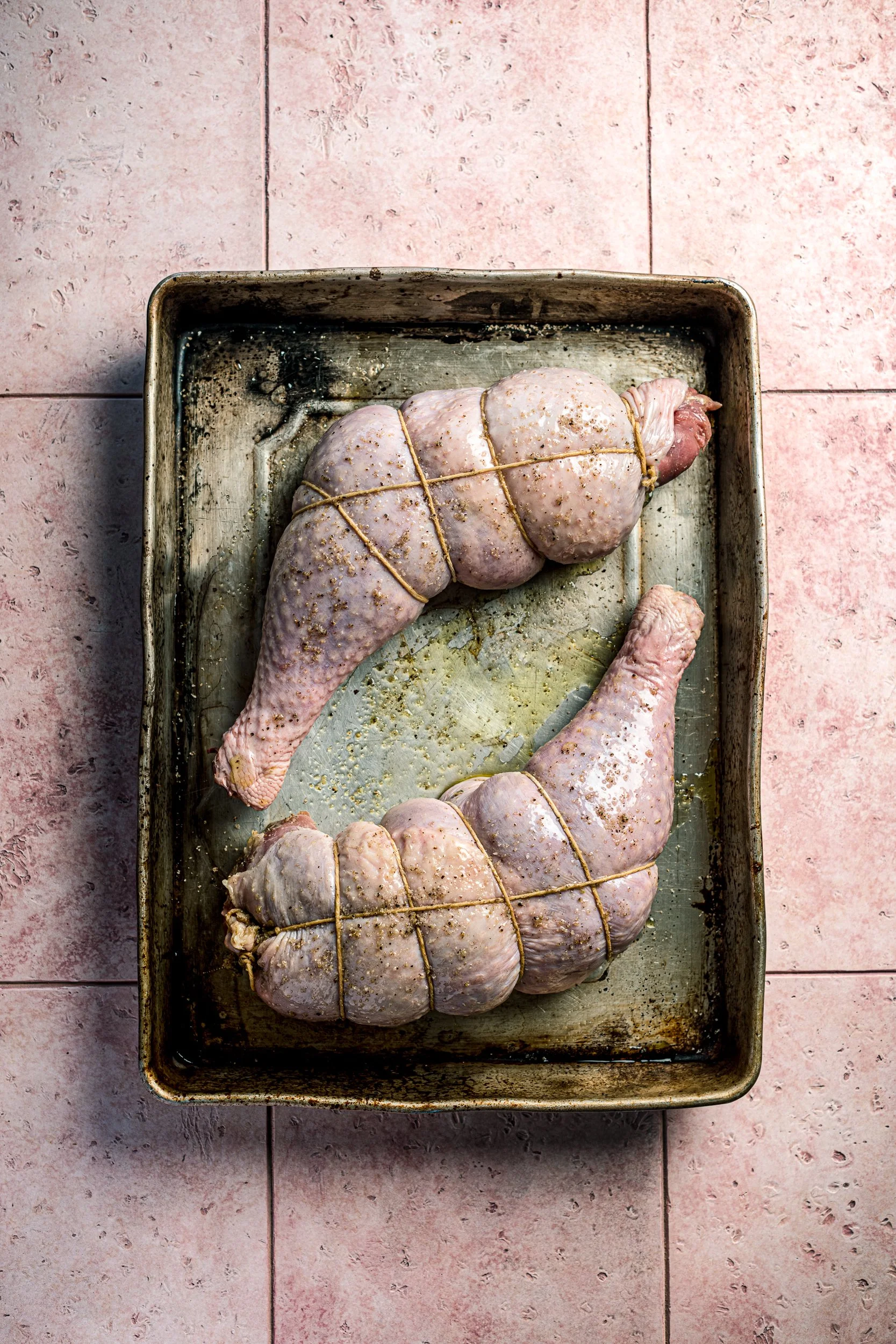2 (~2.5 pounds) turkey legs each, skin on, semi-deboned (leave drumstick with bone-in)