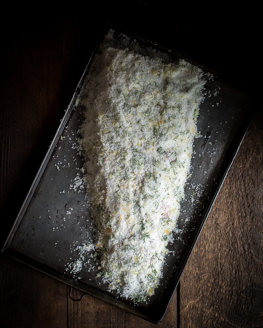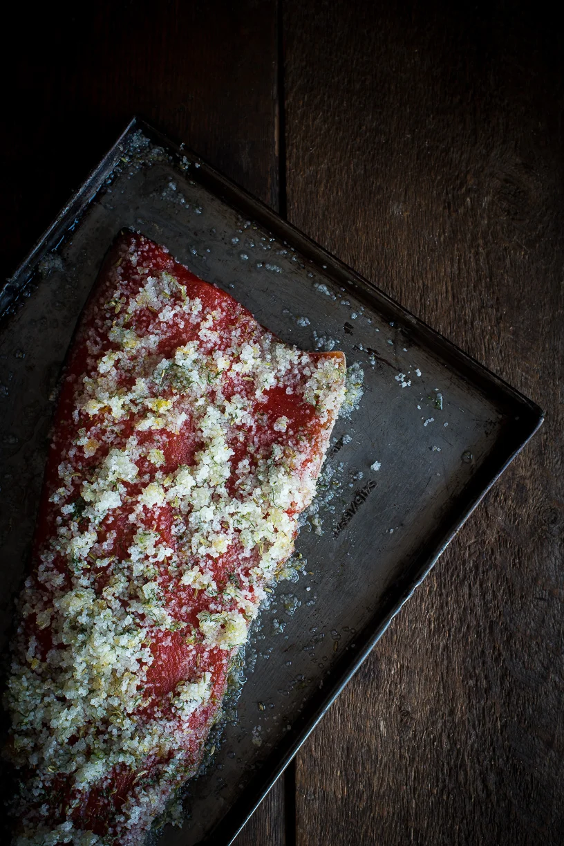Rinse off the cure, then put the salmon back on the tray and leave it uncovered in the fridge to air-dry overnight.